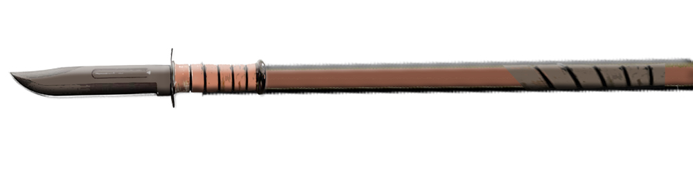 The knife is not well balanced and can be thrown for 1 stab damage, but the attempt will incur a -1 penalty to the attempt. If the handle is emptied and a large, smoothed stick embedded in it, the knife becomes a glaive-like spear capable of inflicting 1 cut damage and 2 stab damage with a range of 2 pr 3 meters/yards. If made well enough it may also be thrown as a spear with a range of 5+ strength bonus meters/yards. Furthermore, the haft can be used to attack inflicting 0 crush damage, or to perry a personal attack with a bonus of +1. To construct this weapon requires crafting, hunting, or survival skill.